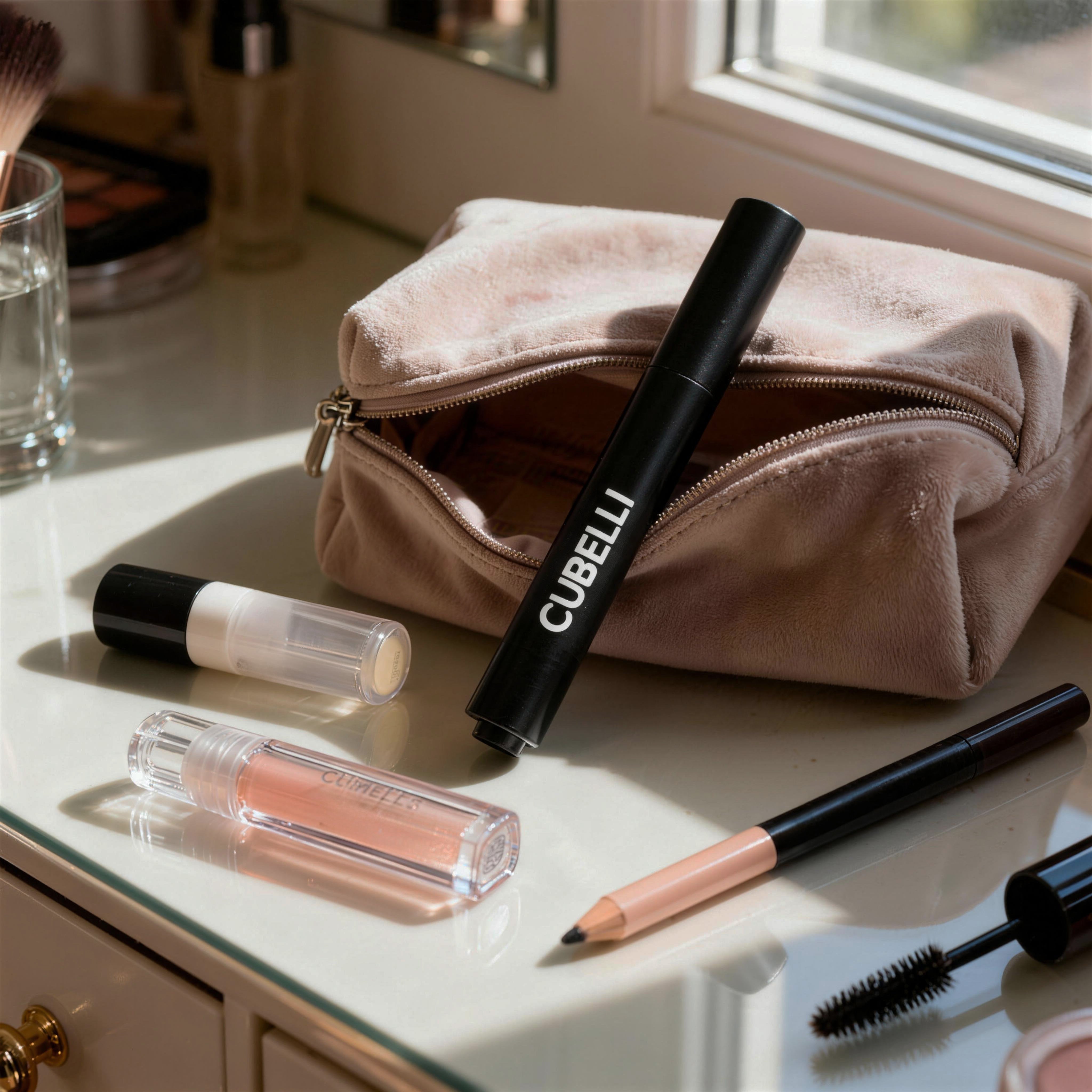 The Cubelli Make-Up Bag is your sleek on-the-go organizer – compact yet roomy enough for all your lip & lash essentials, from desk days to late nights.